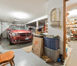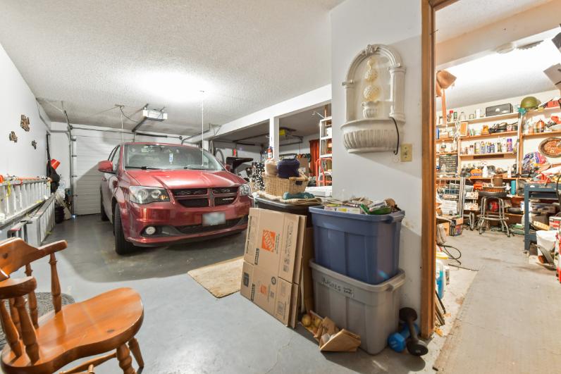 Updates include roof, A/C & vinyl windows. Enjoy the fully fenced yard with mature landscaping, 2 sheds & hot tub. Huge double garage with workshop (22’2 x 28’9).